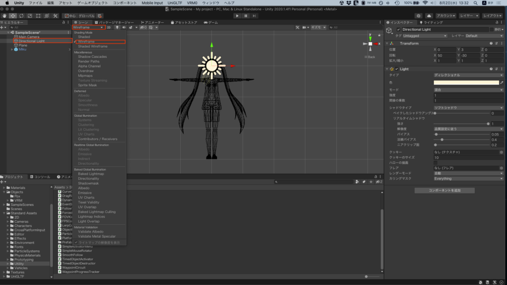 SceneViewをWireframeに変更