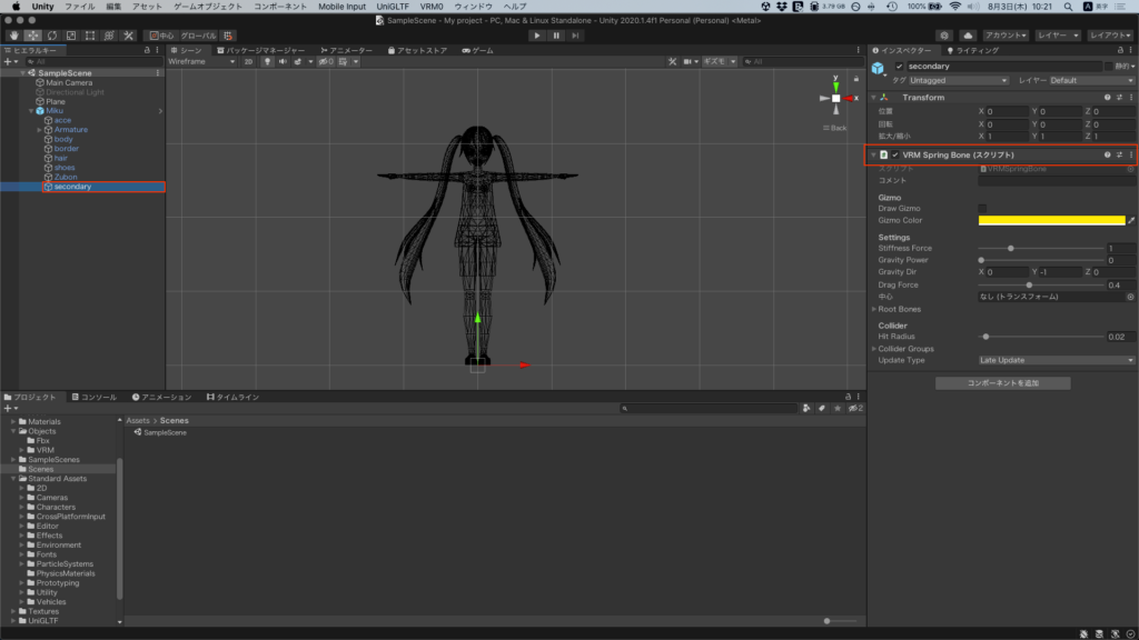 ヒエラルキーからVRMのオブジェクトからSecondaryを選択する。