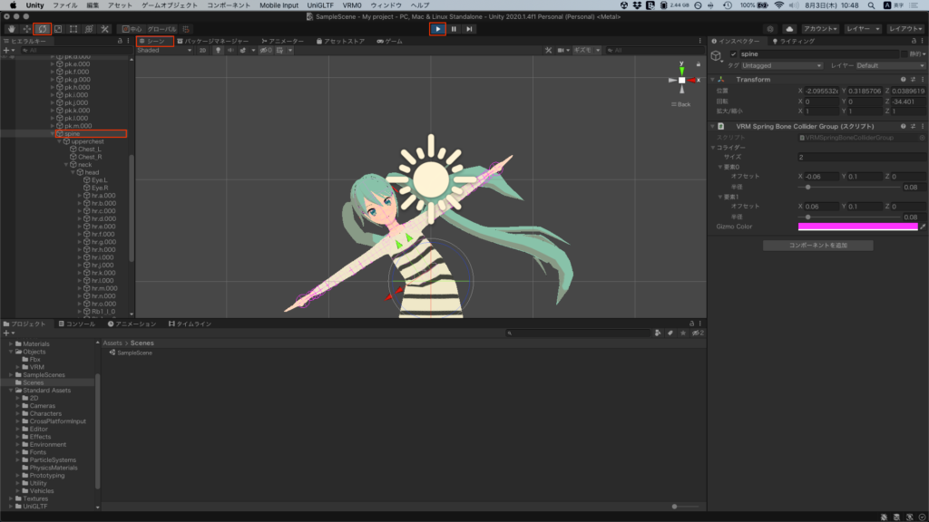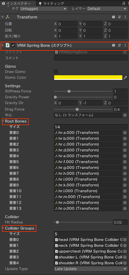 前回VRMのSpringBornColliderGroupの設定を行いました。