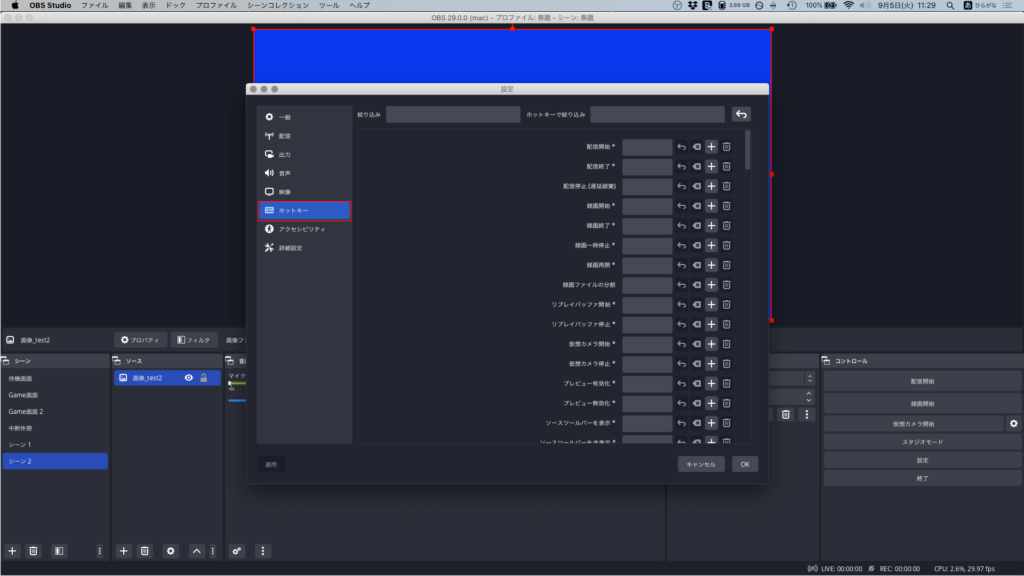 作成したシーン分のホットキー設定ができます。