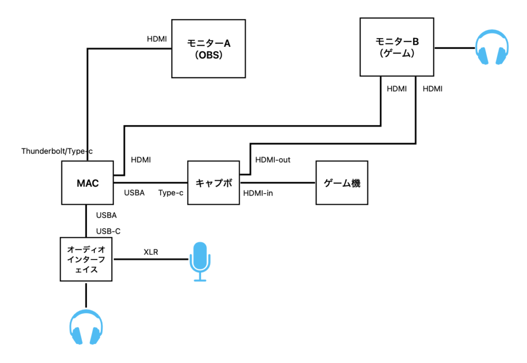 Mac側でオーディオインターフェースからの音を認識させる必要があります。