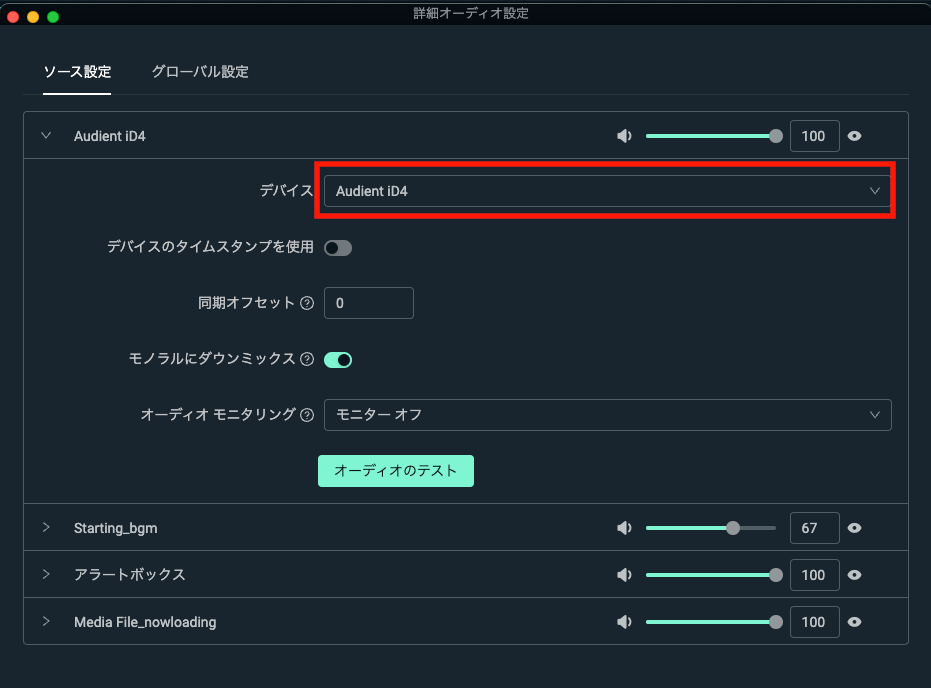 出力:[AudientiD4]に設定